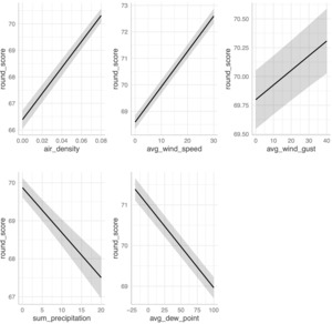 Ultimately, while luck and randomness remain inherent aspects of golf, our analysis demonstrates that measurable environmental conditions play a substantial role in shaping player performance. Rather than viewing weather as an uncontrollable source of variance, it should be understood as a systematic and quantifiable component of the game, providing essential context for evaluating performance and success on the course.